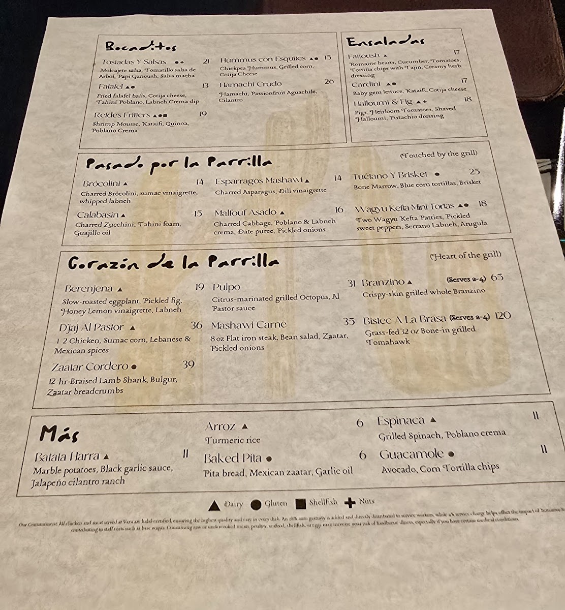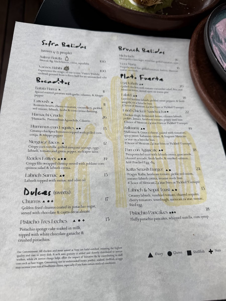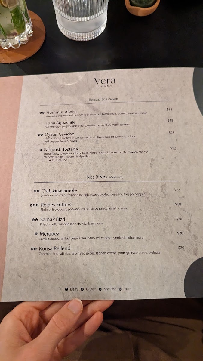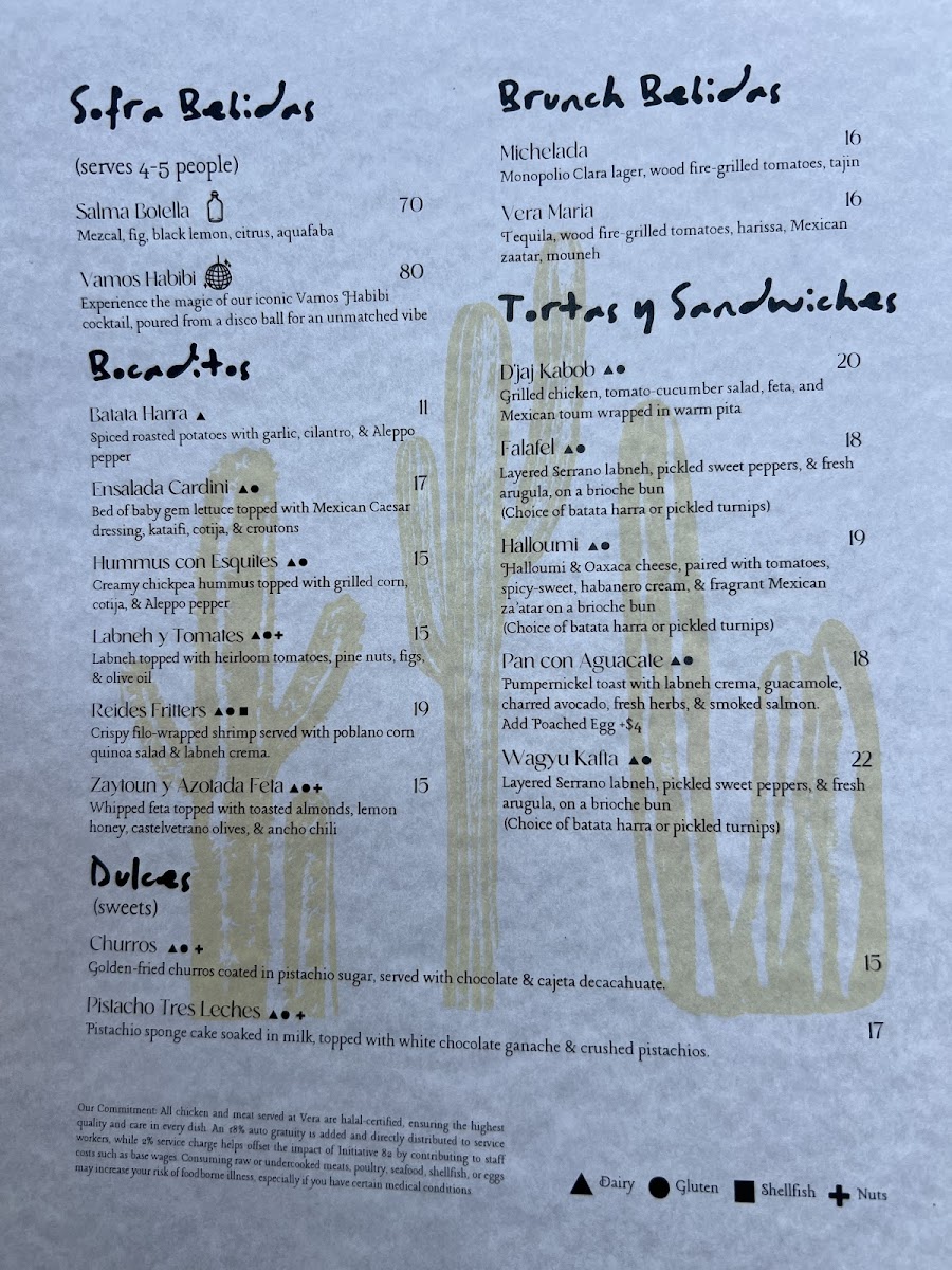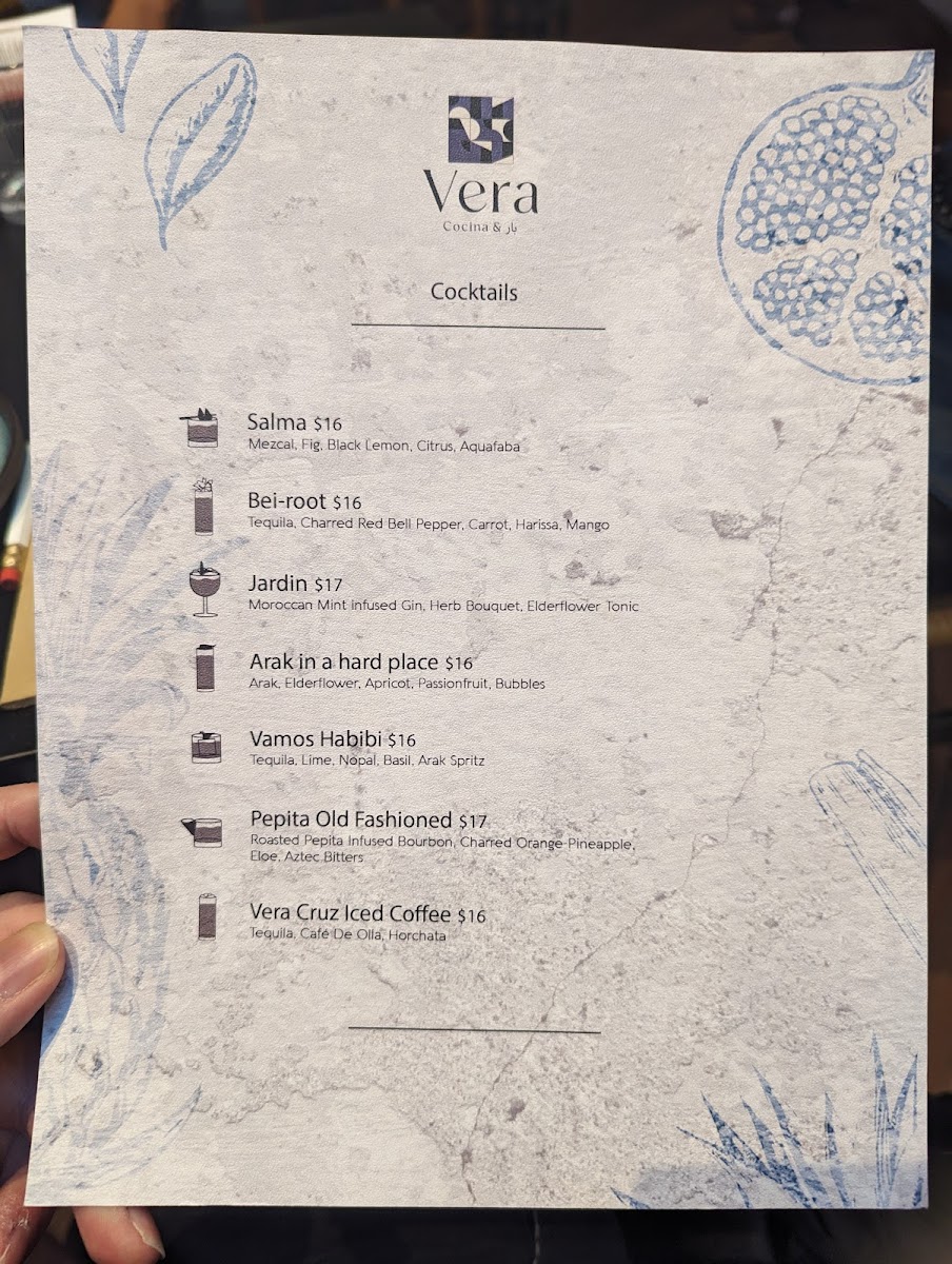 At Vera Cocina & بار, the vibrant fusion of Latin and Middle Eastern flavors invites you to dive into a unique culinary experience. Nestled in the heart of Washington, DC, this menu brings together the best of both worlds with a bold selection of dishes that satisfy every craving. From mouthwatering tacos and savory kebabs to fresh, zesty salsas and aromatic dips, there's something for everyone. Whether you're in the mood for a hearty main course or a light bite to share, Vera Cocina & بار Menu offers an array of options that combine rich traditions with a contemporary twist. Expect every dish to be crafted with fresh ingredients, bursting with flavor, and presented with care. Come hungry and explore the irresistible variety that makes this spot a local favorite.